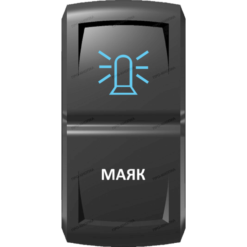 Переключатель Про-Кнопка, ВКЛ-ОТКЛ, Гравировка, Синий/Белый, "Маяк"