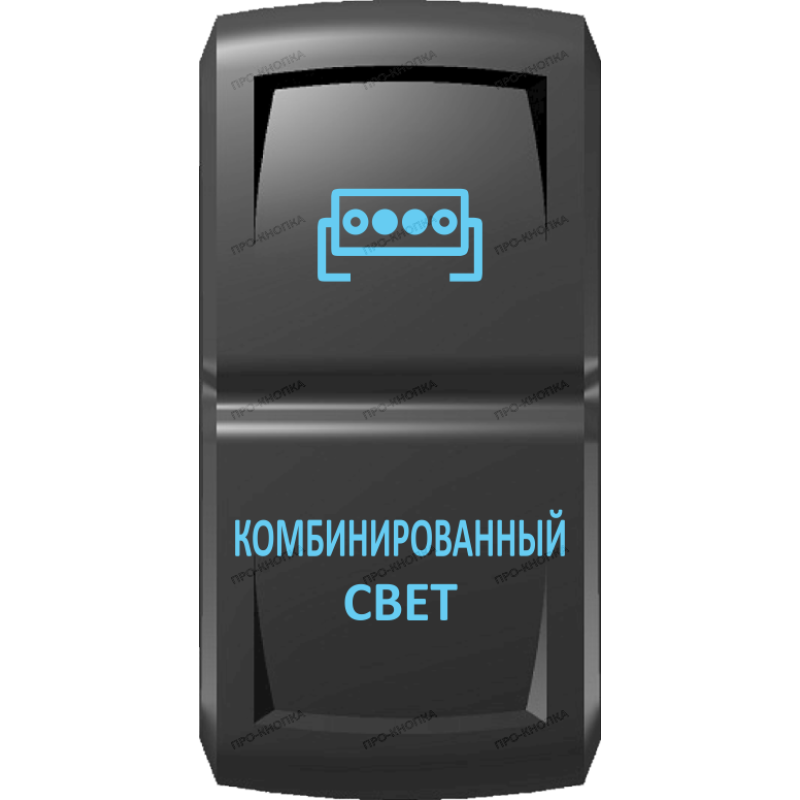 Переключатель Про-Кнопка, ВКЛ-ОТКЛ, Гравировка, Синий/Синий, "Комбинированный свет"