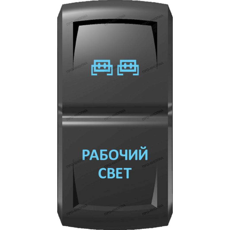 Переключатель Про-Кнопка, ВКЛ-ОТКЛ, Гравировка, Синий/Синий, "Рабочий свет"