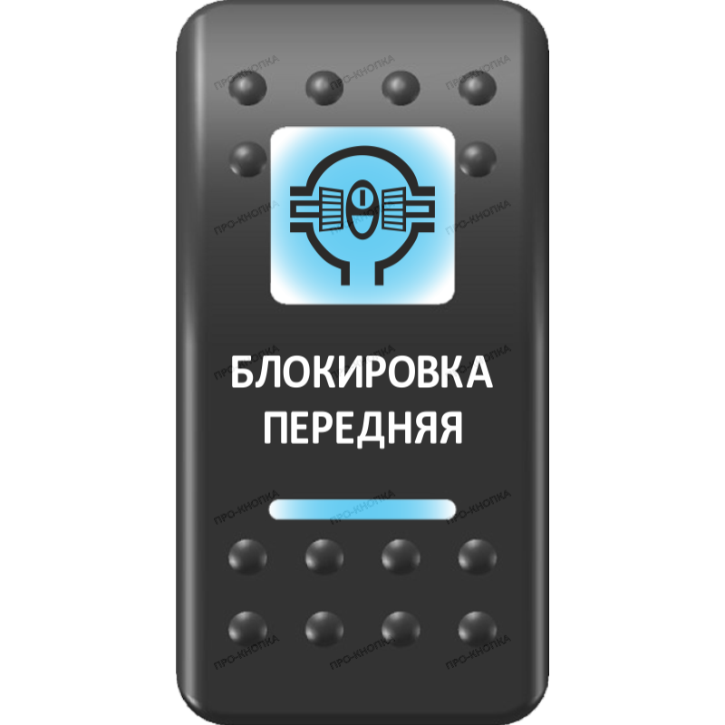 Переключатель Про-Кнопка, ВКЛ-ОТКЛ, Печать, Синий/Синий, "Блокировка передняя"